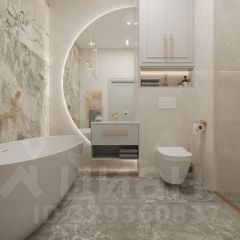 Слева располагается огромная ванная комната 8,4 м2, здесь вы сможете разместить все необходимое для ежедневных процедур.