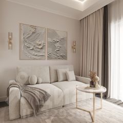 Эта двухкомнатная квартира площадью 106 м2 представляет собой образец современного комфорта и продуманной эргономики. Благодаря планировке на две стороны ("распашонка"), квартира максимально наполнена естественным светом и легко проветривается.