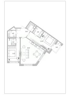 Шикарная двухкомнатная квартира площадью 104,9 м2 цепляет уникальным расположением комнат по трем сторонам, свет обеспечивает максимальную инсоляцию, панорамные виды и отличное естественное проветривание.
