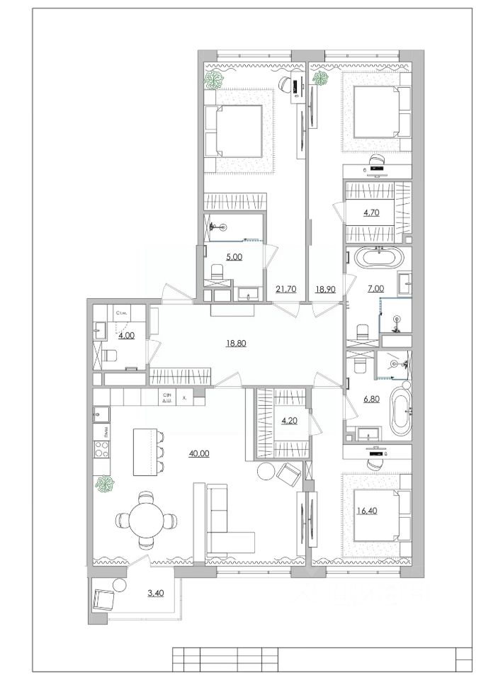 Четыре санузла (3 в спальнях + 1 гостевой) на одну квартиру — это показатель высочайшего качества жизни.
