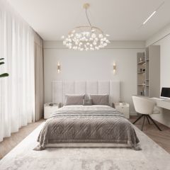 Это главная роскошь данного объекта. В этой квартире у каждого члена семьи есть свой полностью автономный мир. Все спальни выходят на одну сторону, гарантируя единый световой сценарий и тишину.