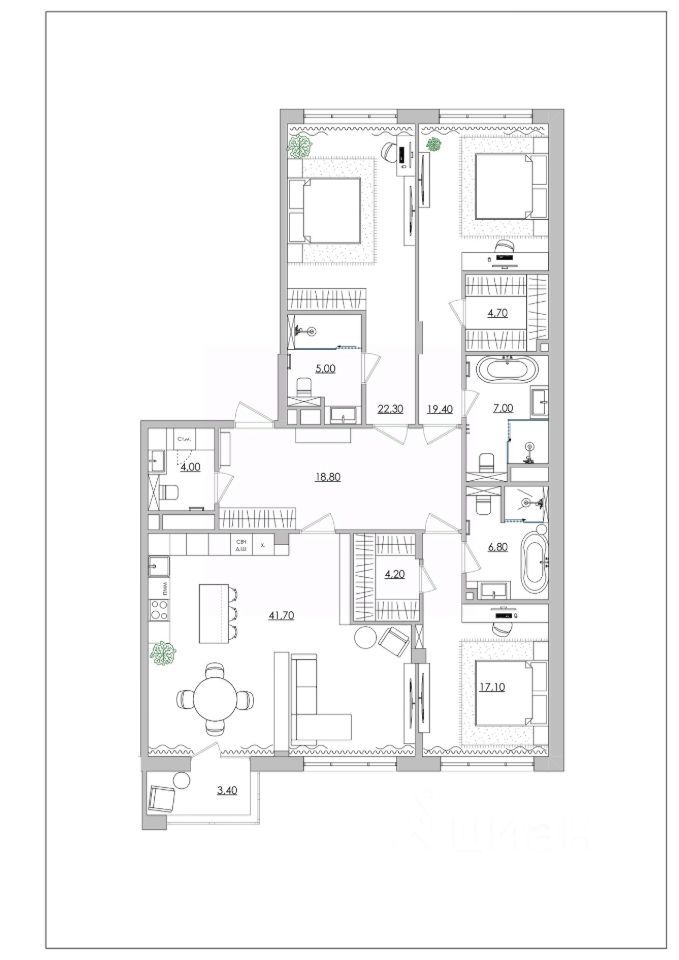Ваш эксклюзивный лот 154,4 м2 с тремя мастер-спальнями! По-настоящему шикарная квартира площадью 154,4 м2, где роскошь и функциональность переплетаются в единое гармоничное целое. Эта резиденция, расположенная на обе стороны дома, предлагает непревзойденный уровень комфорта и приватности, создавая идеальные условия для жизни самой взыскательной семьи. Впечатляющее Начало: ваше знакомство с квартирой начинается с внушительного гранд-холла площадью 18,8 м2. Это не просто прихожая, а полноценная зона приема, задающая тон всей квартире. Здесь достаточно места для размещения большой дизайнерской консоли, произведений искусства или масштабных систем хранения. Гостевой Туалет, удобно расположенный справа от входа, обеспечивает максимальный комфорт для ваших гостей, сохраняя приватность личных ванных комнат. Центральное место в квартире занимает грандиозная кухня-гостиная площадью почти 42 м2. Это пространство создано для жизни, общения и развлечений. Благодаря своему размеру и расположению, эта зона залита светом, создавая атмосферу воздушности и простора. Из гостиной вы попадаете на собственный балкон, где можно наслаждаться утренним кофе, вечерним закатом или организовать уютную зону отдыха на свежем воздухе. Здесь с легкостью разместятся роскошная кухонная группа с островом, масштабная обеденная зона для большой семьи и друзей, а также комфортабельная зона отдыха с большим диваном и мультимедийной системой. На той же стороне, что и кухня-гостиная, расположена первая из трех великолепных спален, 17м2 простора для отдыха и уюта. К ней примыкает собственная ванная комната почти 7 м2 — ваш личный уголок для релаксации. На противоположной стороне квартиры расположены еще две мастер-спальни, образующие полноценное приватное крыло. Это обеспечивает максимальное уединение для всех членов семьи и гарантирует тишину, даже когда в гостиной кипит жизнь. Вторая мастер-спальня, площадью 22,3 м2, является настоящим люксом. Её впечатляющий размер позволяет создать полноценную спальную зону с возможностью обустройства рабочего места или зоны для чтения. К ней также примыкает собственная ванная комната площадью 5 м2, что гарантирует максимальный комфорт и независимость. И рядом еще одна великолепная спальня площадью 19,4 м2, предлагающая исключительный уровень комфорта. Собственная гардеробная площадью почти 5 м2 решает все вопросы с размещением личных вещей. К ней примыкает просторная ванная комната площадью 7 м2, сопоставимая по размерам с основными ванными в лучших отелях, где можно создать персональный SPA-комплекс. Эта квартира — не просто жилье, это инвестиция в ваш образ жизни. Здесь продумано всё до мелочей, чтобы вы могли наслаждаться каждым моментом в атмосфере абсолютного комфорта и роскоши. Ваш дом, ваша крепость, ваша мечта — ждут вас! Мечтали о жизни в стиле лучших отелей мира? Теперь это реальность в самом сердце Рязани! Ваш комфорт: 25-м бассейн с SPA, современный фитнес-зал, зона для йоги, тихий кафетерий. Ваша безопасность: охраняемая терр