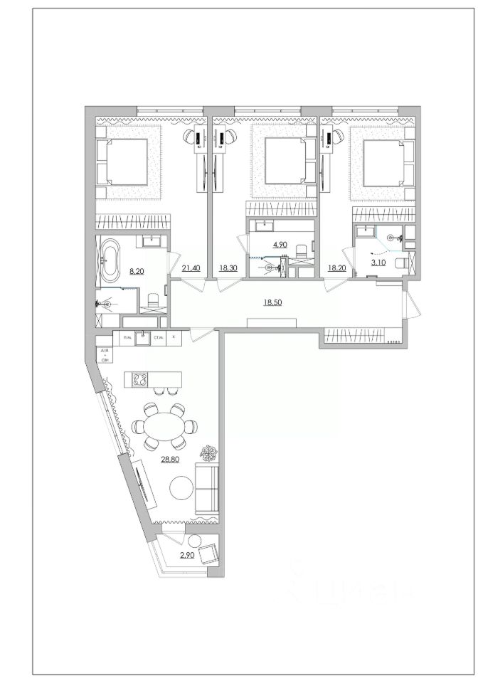 4. Статус и инвестиция: квартиры с такой планировкой ("распашонка" с тремя полноценными мастер-спальнями) встречаются крайне редко и всегда остаются в цене.