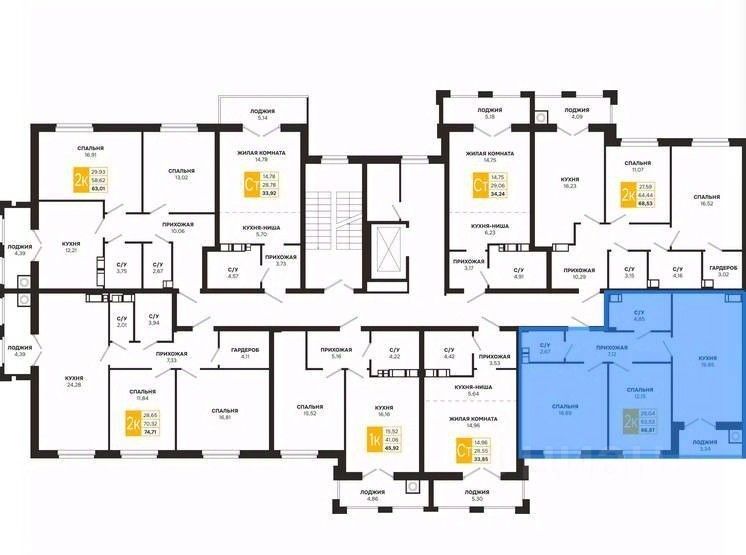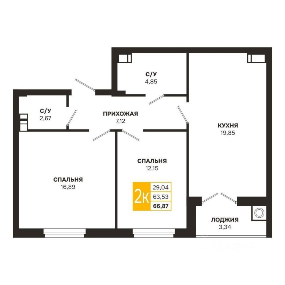 Проектная площадь 66,87 кв.м.