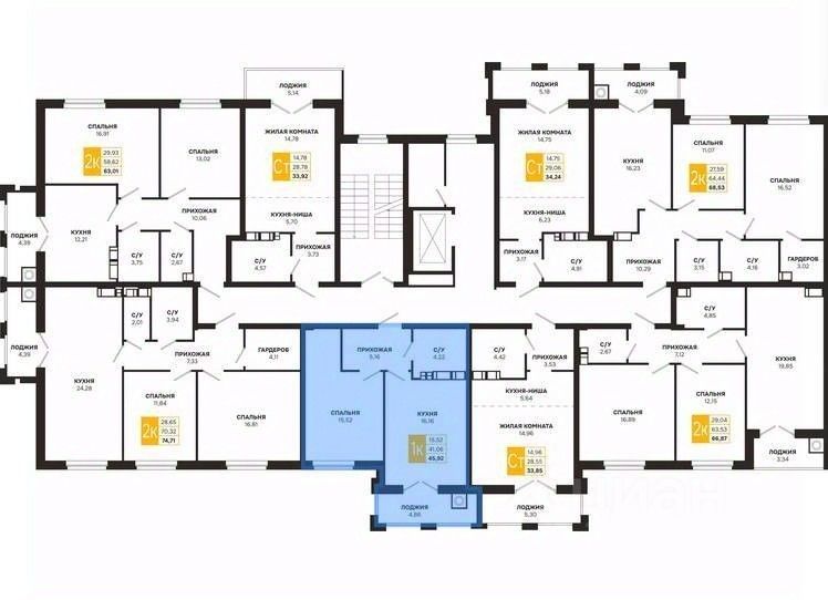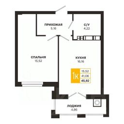 Проектная площадь 45,92 кв.м.
