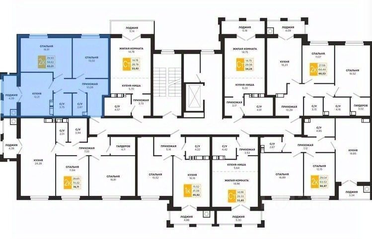 Проектная площадь 63,01 кв.м.