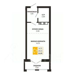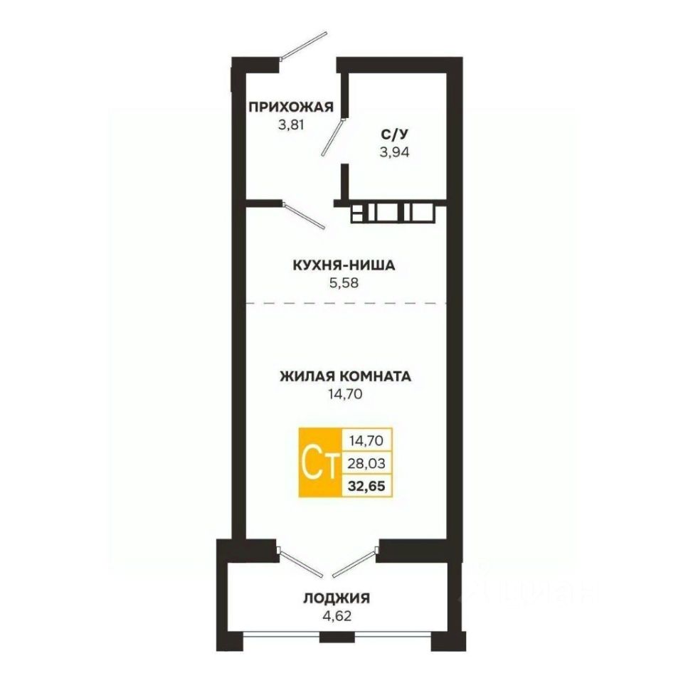 Квартира студия с отделкой в ЖК "Ривер Парк", входит в ТОП-3 конкурса "Лучший жилой комплекс-новостройка в Рязанской области".