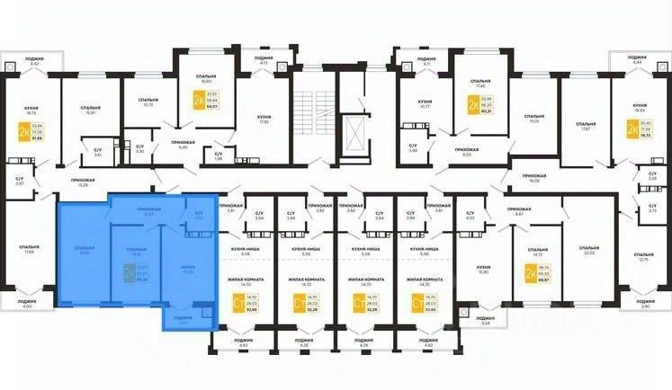 Проектная площадь 65,39 кв.м.