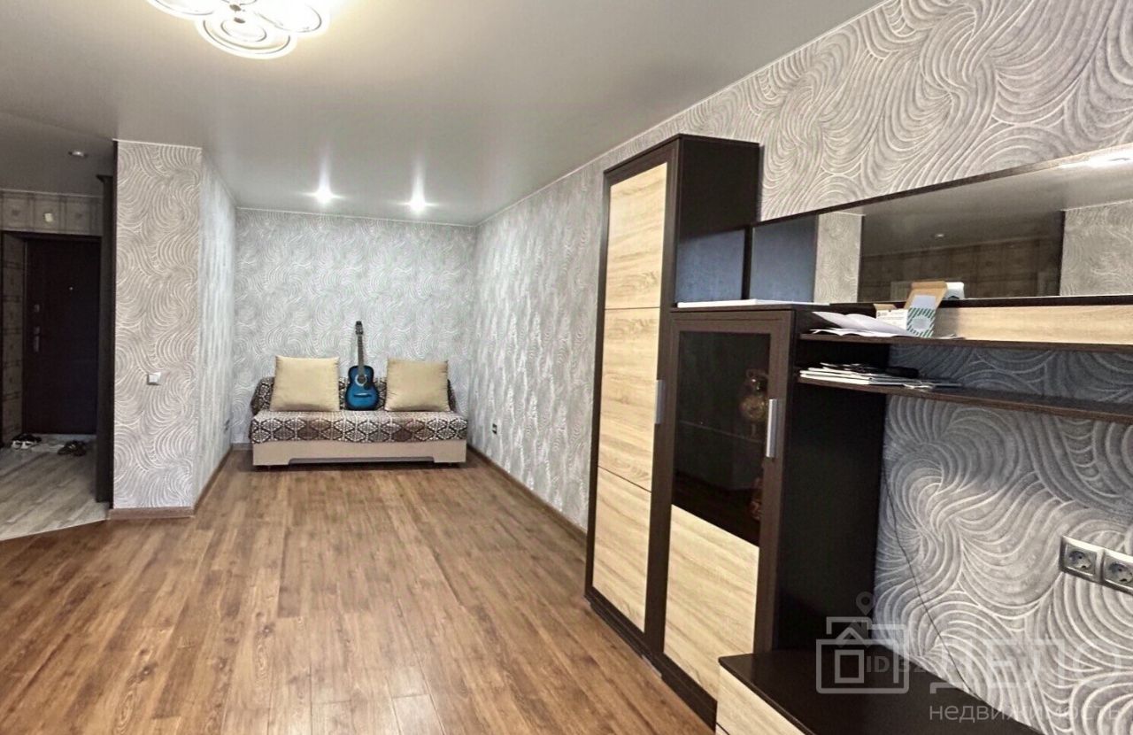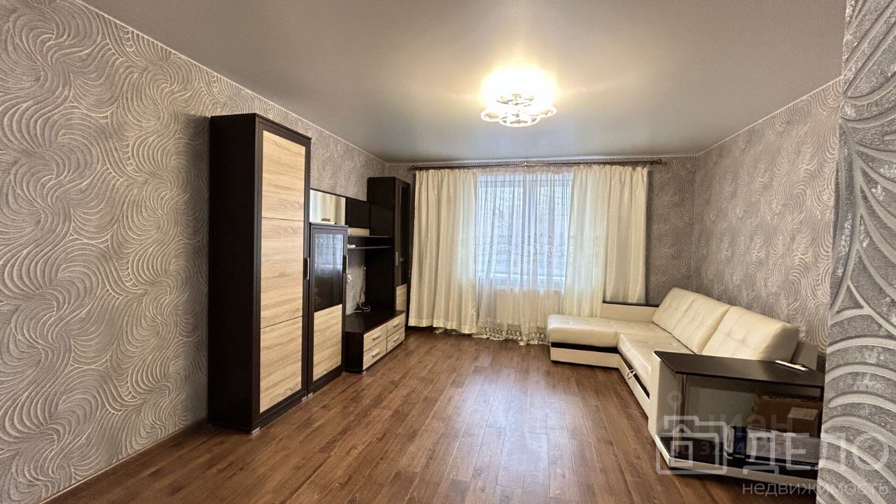 Площадь 45,6 м² — просторная однушка, можно выделить спальную зону и гостиную.