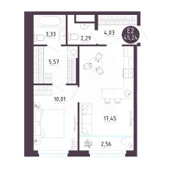 Общая площадь45,24 м²