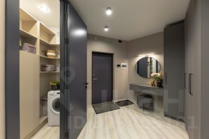 Здесь планировка с кухней-гостиной, отдельной спальней и гардеробной. Потолки выше, чем обычно, окна почти во всю стену — комната наполнена светом и не давит.