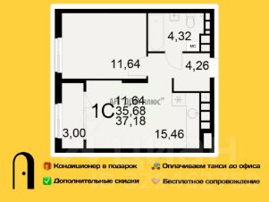 Однокомнатная квартира 37.18м² в ЖК "Радости жизни" от застройщика "Единство"