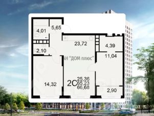 Двухкомнатная квартира 66.68 м² в ЖК "Радости жизни" от застройщика "Единство"