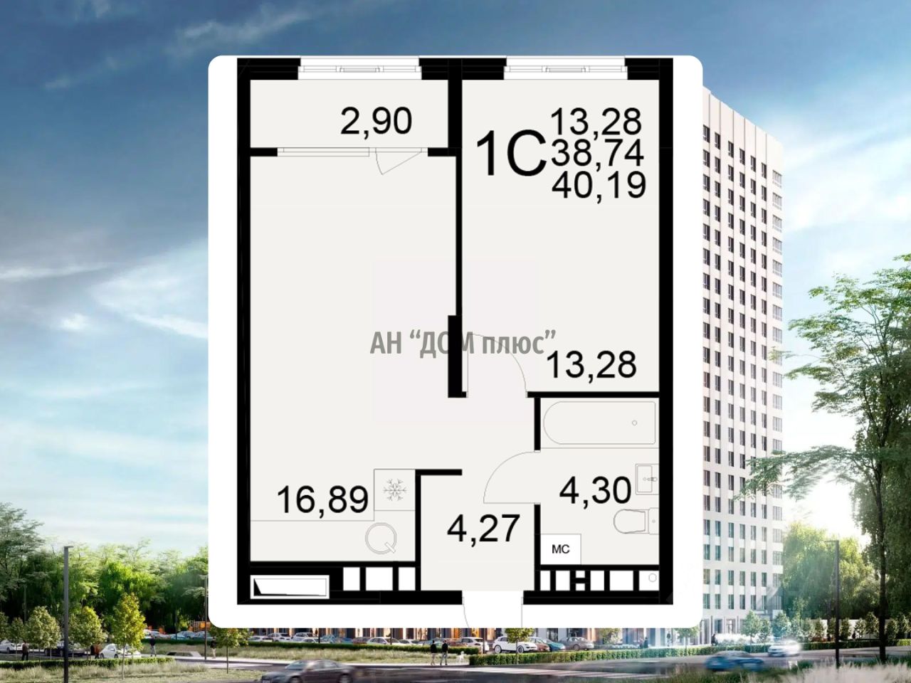 Однокомнатная квартира 40.19м² в ЖК "Радости жизни" от застройщика "Единство"