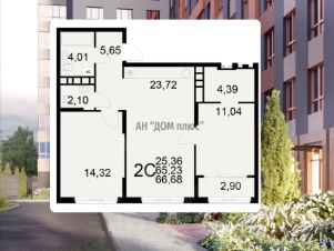 Двухкомнатная квартира 66.68 м² в ЖК "Радости жизни" от застройщика "Единство"