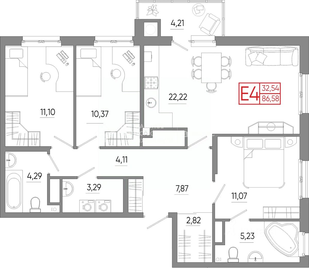 Евро-4 на "Бульваре оптимистов" , д.8 — функциональная планировка и отличный вид из окна!