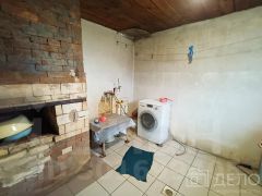 Дом построен из пеноблоков, отделка - красный кирпич. Внутри полностью утеплен и обшит гипсокартоном. В цоколе расположен подвал. На участке две канализационные ямы. Газ проходит в метре от участка. В доме печное отопление.