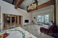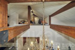 Гостиная со 2 светом, высота потолков - 5,5 м. Из гостиной возможно организовать доступ в полумансарду с ремонтом (полезная площадь примерно 30 кв.м.) с выходом на холодный чердак (место хранения).