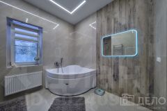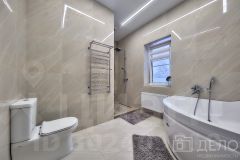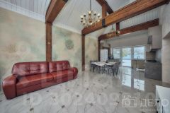 Ремонт по авторскому дизайн-проекту. В отделке использовались самые дорогие и качественные материалы. Стены - декоративная штукатурка. Деревянные многослойные потолки. Импортная плитка - в отделке пола и санузлов.
