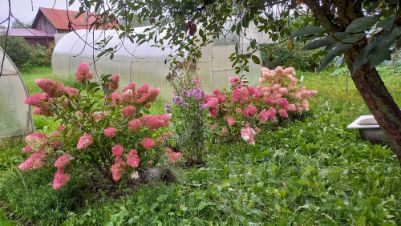 На терртории: теплицы; кустарники: жимолость, смородина (черная, красная), малина (желтая, красная); плодовые деревья: яблони, груша, вишня, слива, черноплодная рябина, калина; клубника; многолетние цветы: гортензии, флоксы, розы, лилии, хоста и т.д.
