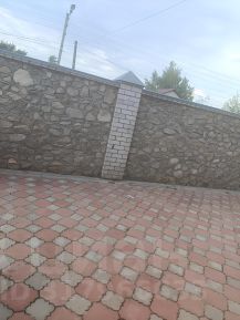 Есть два гаража.один в доме размер 5.30 на 3.10 . другой большой на территории размер 7.40 на 4 60 . Территория вся в тротуарной плитке .На территории еще один дом кирпичный 100 метр .кв .толстыми стенами теплый с отоплением газ ,горячей водой центральной канализации.крыша металл черепица большой каркасный бассейн