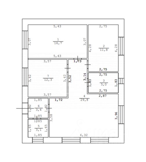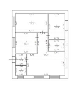 общая площадь 80 кв. метров, где имеется отдельная гардеробная, кухня-гостиная, три комнаты, совмещенный сантехнический узел;