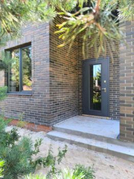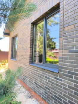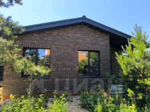 Крыша, подшивка, окна, входная дверь выполнена в едином стиле и цвете.