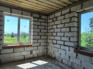 Стены- газобетонный блок D 500 400 мм, облицовочный кирпич- 120 мм ( М200 F100).