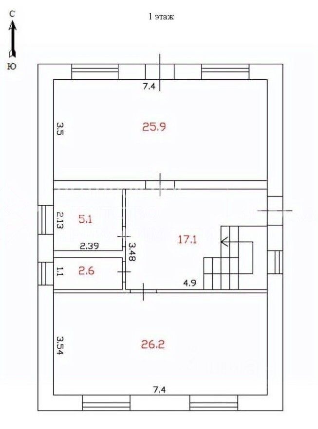 - возможность размещения 2 больших или 4 маленьких комнат и с/у.