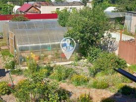 Ухоженный участок с насаждениями (цветы, ягоды, фрукты).