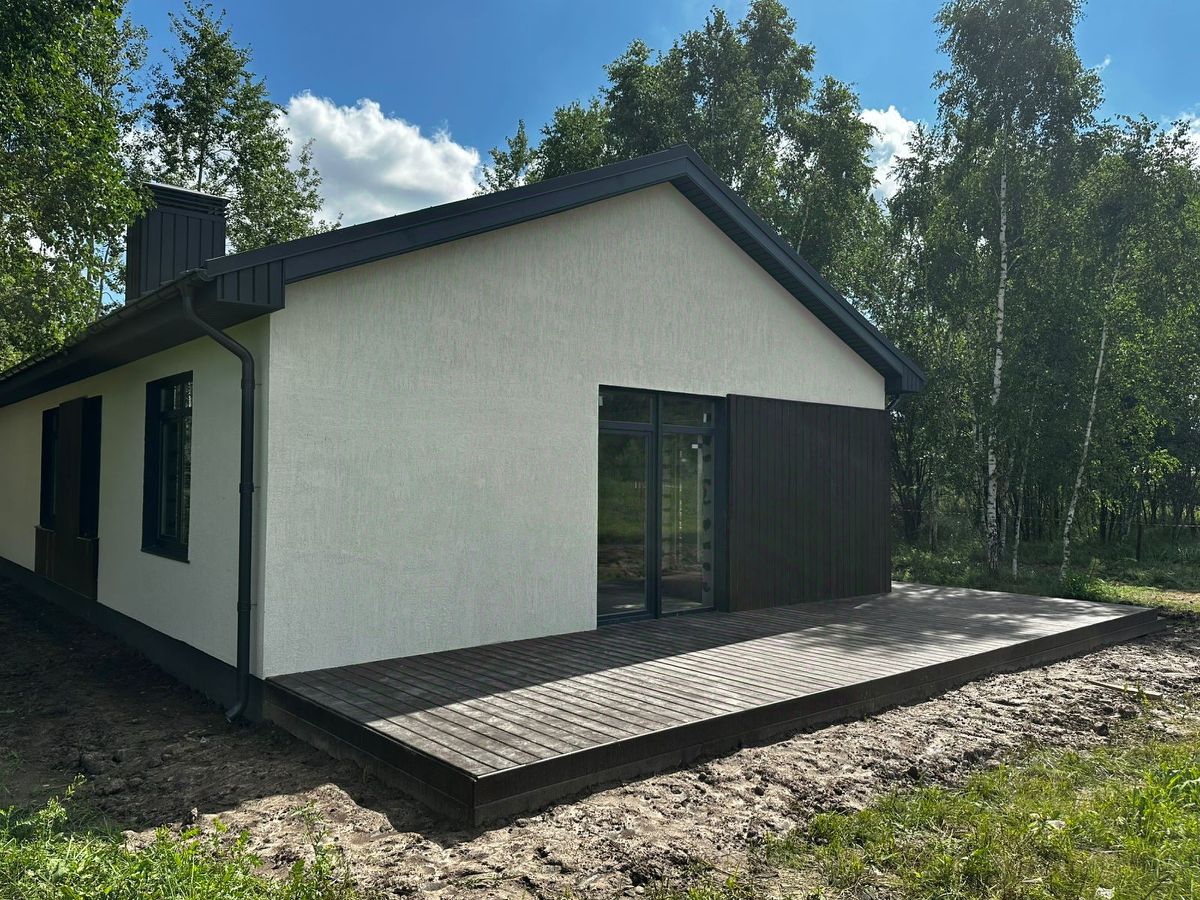 Современный дом, с удобной планировкой. Идеально подходит для семьи с детьми. Площадь дома 100 квадратных метров, высота потолка 3 м. В доме 3 спальни, 2 санузла, кухня-гостиная, техническое помещение + веранда для удобного времяпрепровождения на открытом воздухе. Панорамные окна круглогодично открывают прекрасный вид. Площадь участка 10 соток.