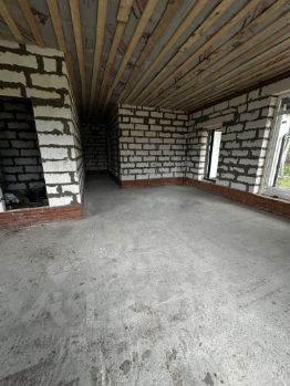 Дом установлен на монолитном основании, стены из газосиликатного блока (400), энергосберегающие стеклопакеты, крыша - клик-фальц Grand Line. Электричество подведено, газ по границе участка, подключены канализация - септик и вода - скважина. По отдельному запросу возможны отделочные работы, вплоть до чистовой отделки.