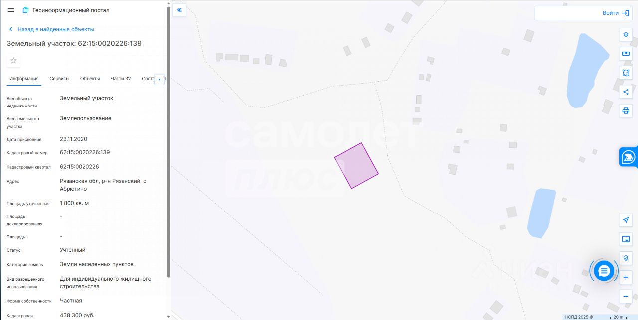 Вид разрешенного использования земельного участка: для индивидуального жилищного строительства (кадастровый номер: 62:15:0020226:139).