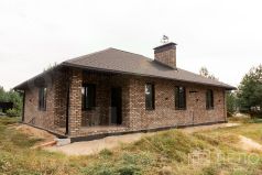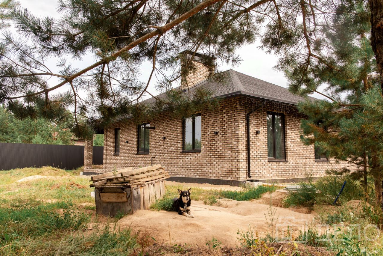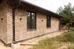 Дом облицован кирпичом ручной формовки, кладка выполнена на цветную кладочную смесь.