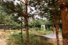 На участке: насыпные грядки, плодовые деревья, молодые сосны.