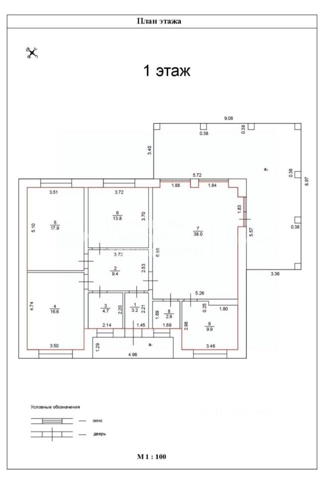 Перекрытие: нулевой цикл - бетонное; 1 этаж - деревянное.