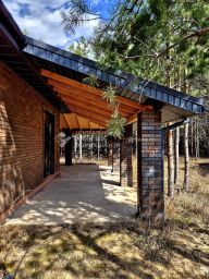 Соседи рядом уже построили дома, подъезд до участка асфальтовая крошка/грунт. На участке растут сосны.