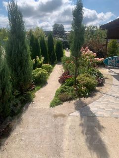 Природа вокруг: Наслаждение тишиной и покоем благодаря зелёному участку, обсаженному плодовыми деревьями и декоративными кустарниками.