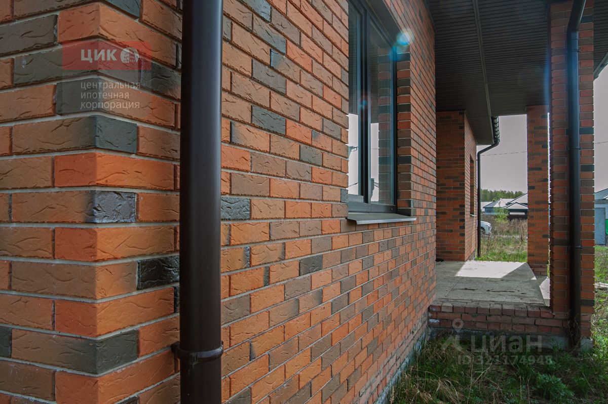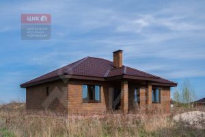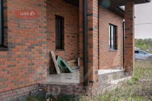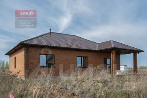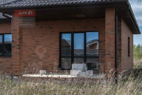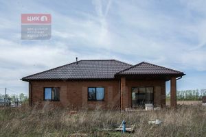 кирпичом. Крыша-мягкая черепица, окна-ПВХ.