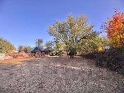 Участок площадью 15 соток с возможностью ведения садоводства. Взрослые плодоносящие деревья около дома (яблоки, груша, слива). Коммуникации включают электричество и газ, водоснабжение — колонка с питьевой водой около дома. Подъезд к участку — грунтовая дорога.