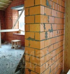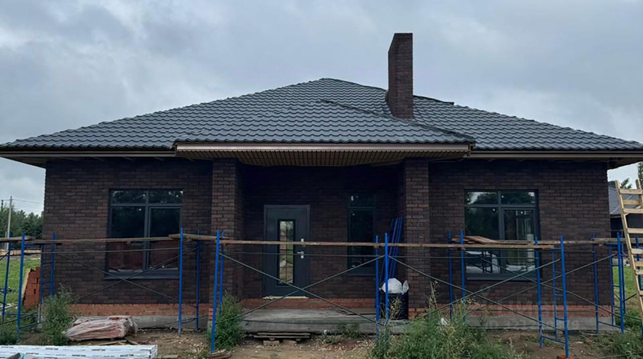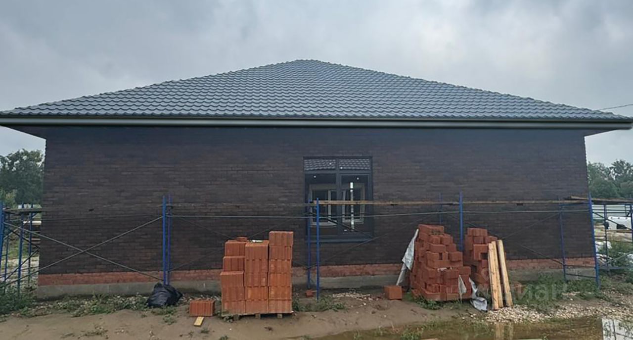 Стены из керамических блоков, облицовка из кирпича ручной формовки. Кровля металлочерепица. Окна ПВХ темного цвета с двухкамерными энергосберегающими стеклопакетами. Фундамент плита. Входная металлическая дверь высокого качества. Электроснабжение уже подключено к границе участка