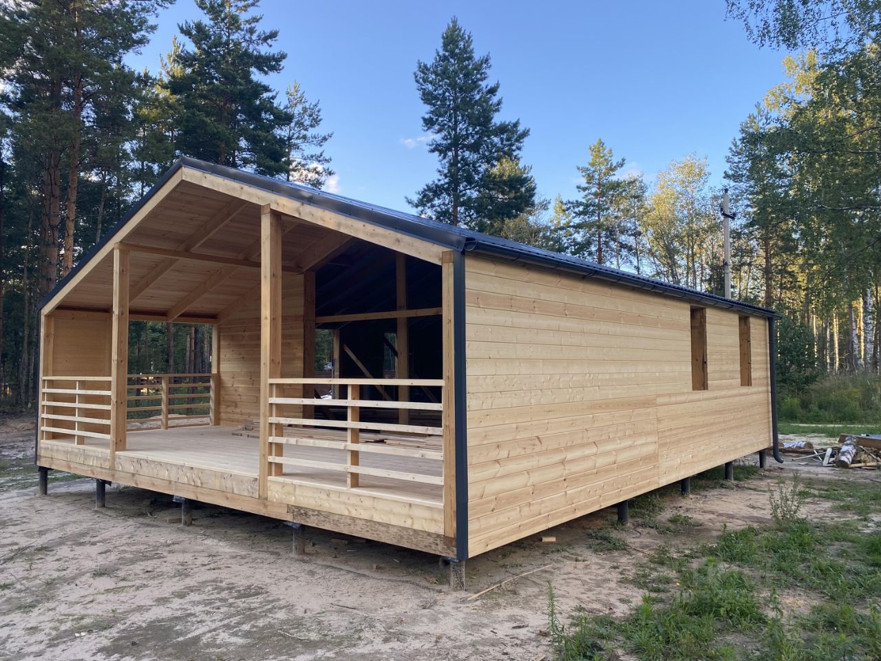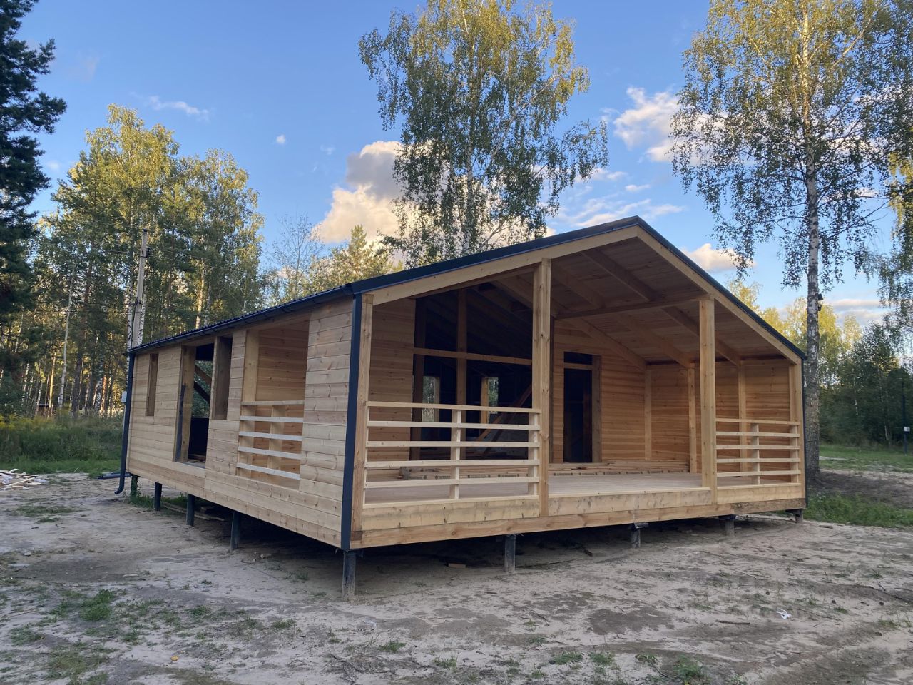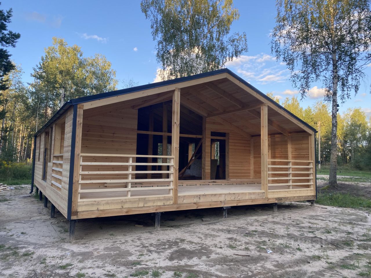• Дом: новый деревянный дом (холодный контур) на сваях, размером 8х9, с просторной террасой — отличная основа для дальнейшей отделки и обустройства под ваши нужды.