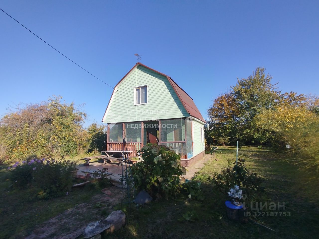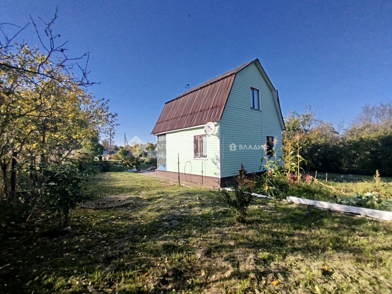 На участке плодовые деревья и кустарники, сарай.