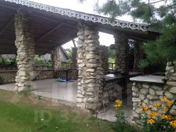 Организована мангальная зона. Белокаменная навес-беседка с уличной кухней.