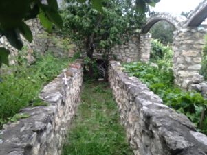 На солнечном склоне участка организованы белокаменные грядки для выращивания овощей/зелени, высажен плодоносящий виноградник, яблони, сливы и т.д.