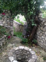 На солнечном склоне участка организованы белокаменные грядки для выращивания овощей/зелени, высажен плодоносящий виноградник, яблони, сливы и т.д.