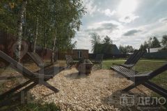 Отдельно стоящая баня с собственным сан узлом, душевой и зоной отдыха - излюбленное место гостей. На участке с А-фреймом имеется подогреваемый банный чан - хит всех времен.