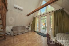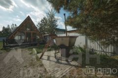 На участке общей площадью 15,86 кв.м. расположены два отдельно стоящих дома (основной 213,48 кв.м и А-фрейм 65 кв.м), баня, зоны барбекю, чан с подогревом, бассейн и костровая зона.