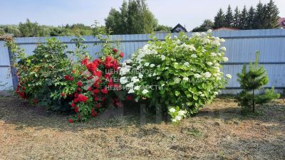 Огорожен со всех сторон. Отличный сад, с цветами и плодовыми деревьями.
