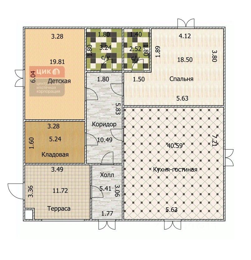 три комнаты {мастер- спальня с душевой}, кухня-гостиная и кладовая.